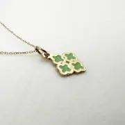 گردنبند طلا 18 عیار سوزیانا مدل چهار گلبرگ سبز