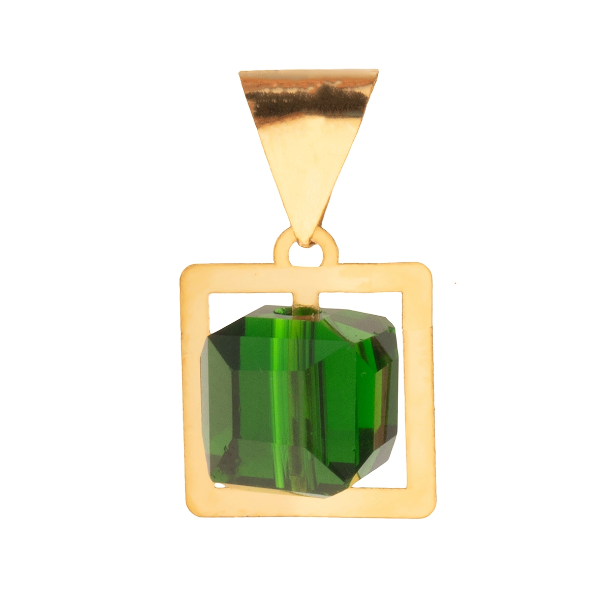 آویز گردنبند طلا 18 عیار سوزیانا مدل مکعب سبز کد 006
