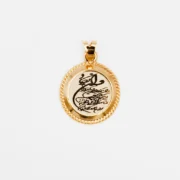 پلاک آویز طلا 18 عیار سوزیانا مدل وان یکاد و چهار قل طرح دایره