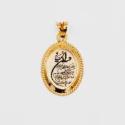 پلاک آویز طلا 18 عیار سوزیانا مدل وان یکاد و چهار قل طرح بیضی