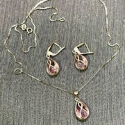 نیم ست نقره 925 عیار مدل قطره صورتی H